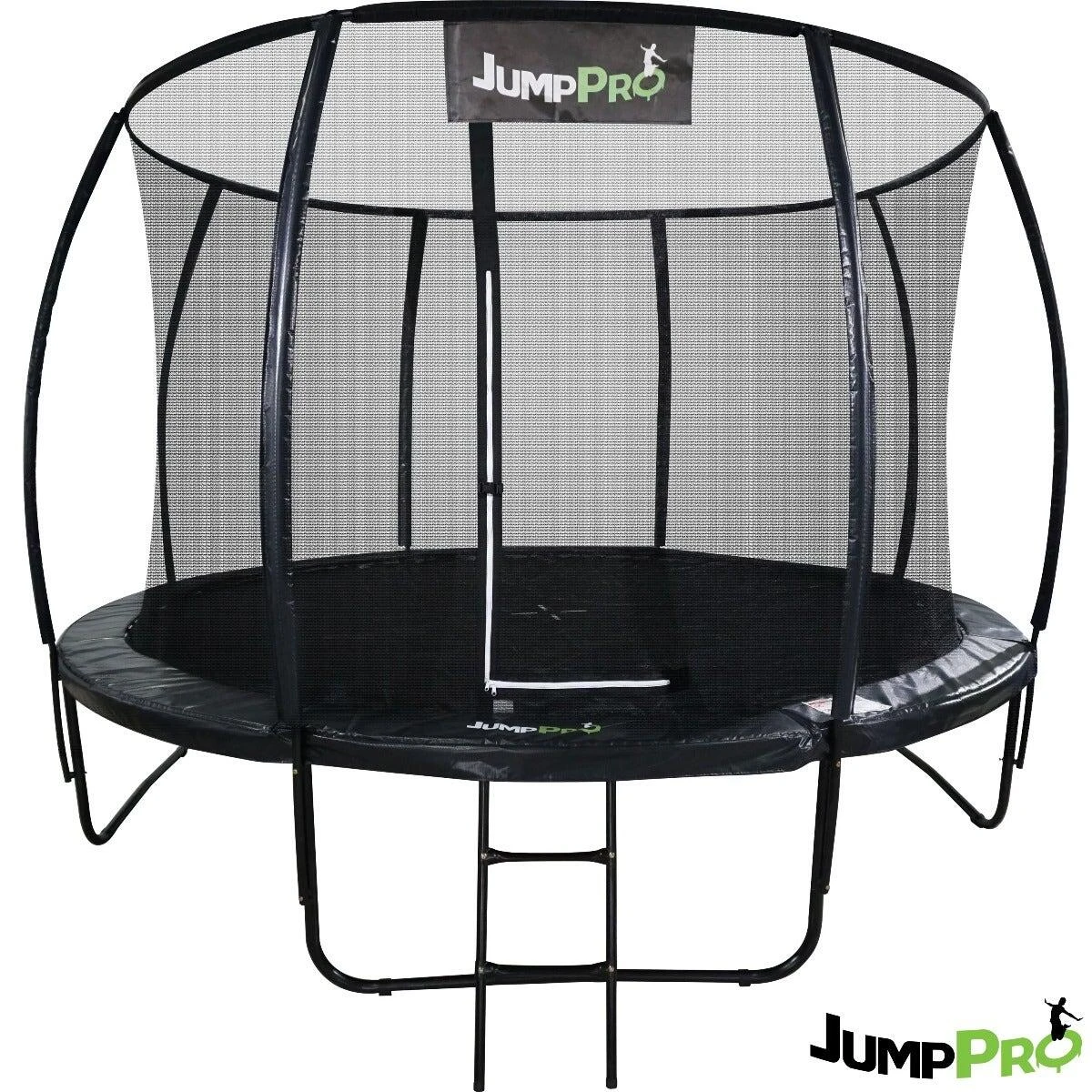 The JumpPRO™ 14ft round trampoline has been designed to perfectly meet the needs of the UK market and gives a generous jumping space of approx 13ft The sleek design features a black powder coated frame and black safety padding making it a discrete addition to your garden.