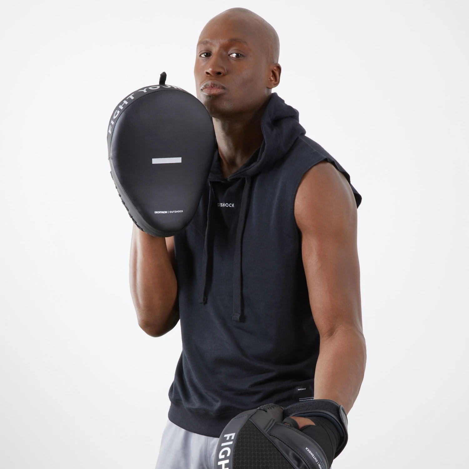 So you don’t have to choose between two criteria, we created a product that meets both of them. For durability, the impact zone is covered with a PU cover carefully designed to withstand friction and wear. For comfort, the back of the punch mitt is fitted with an imitation suede pad that absorbs energy at the wrist while also being perspiration-resistant. To combine the two, the various layers of foam, glued together, absorb energy and thus protect from impact.