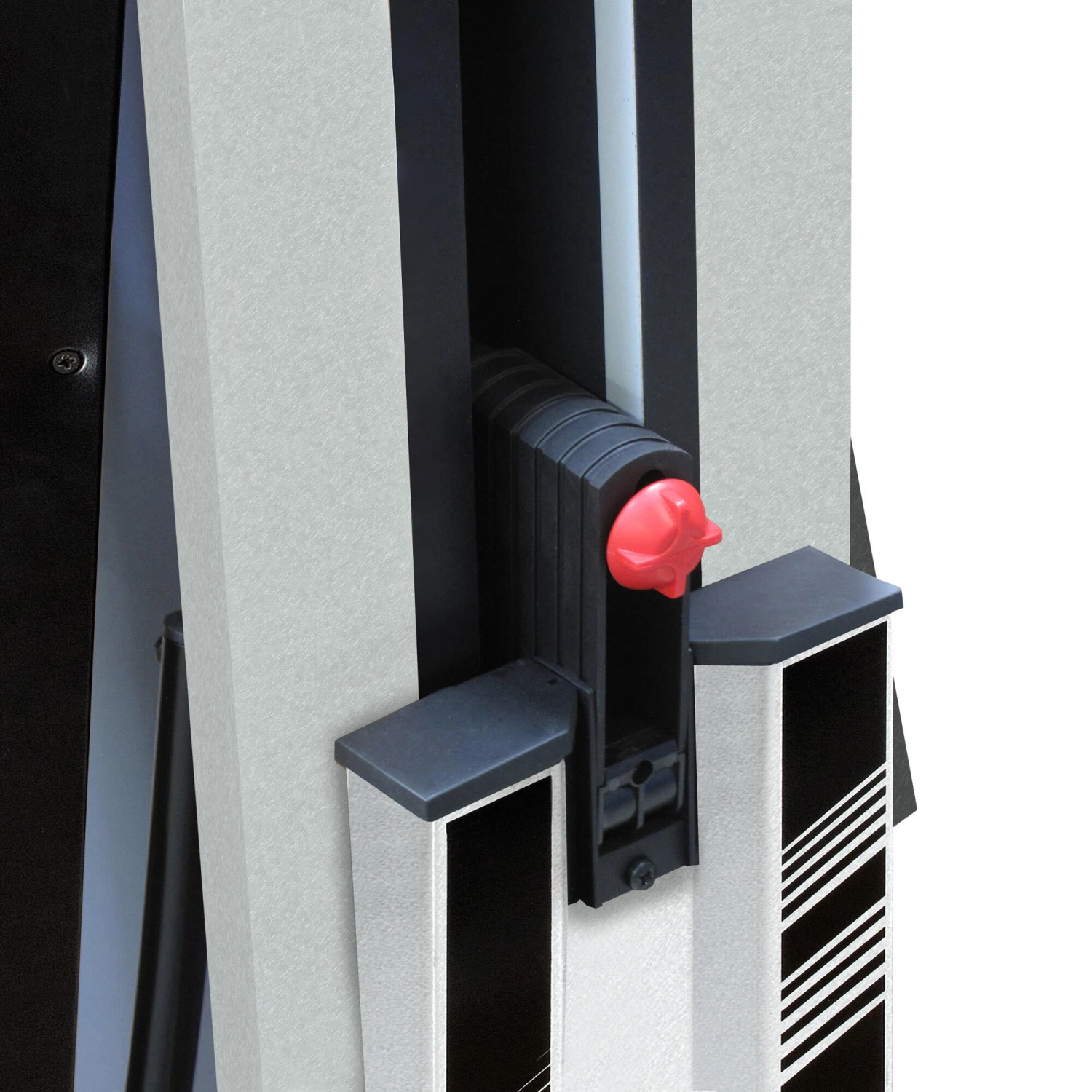16 automatic locking points, the highest level of safety on the market. Thanks to its central unlocking handle, located under the tabletop, the table is very easy for just one person to open and close.
