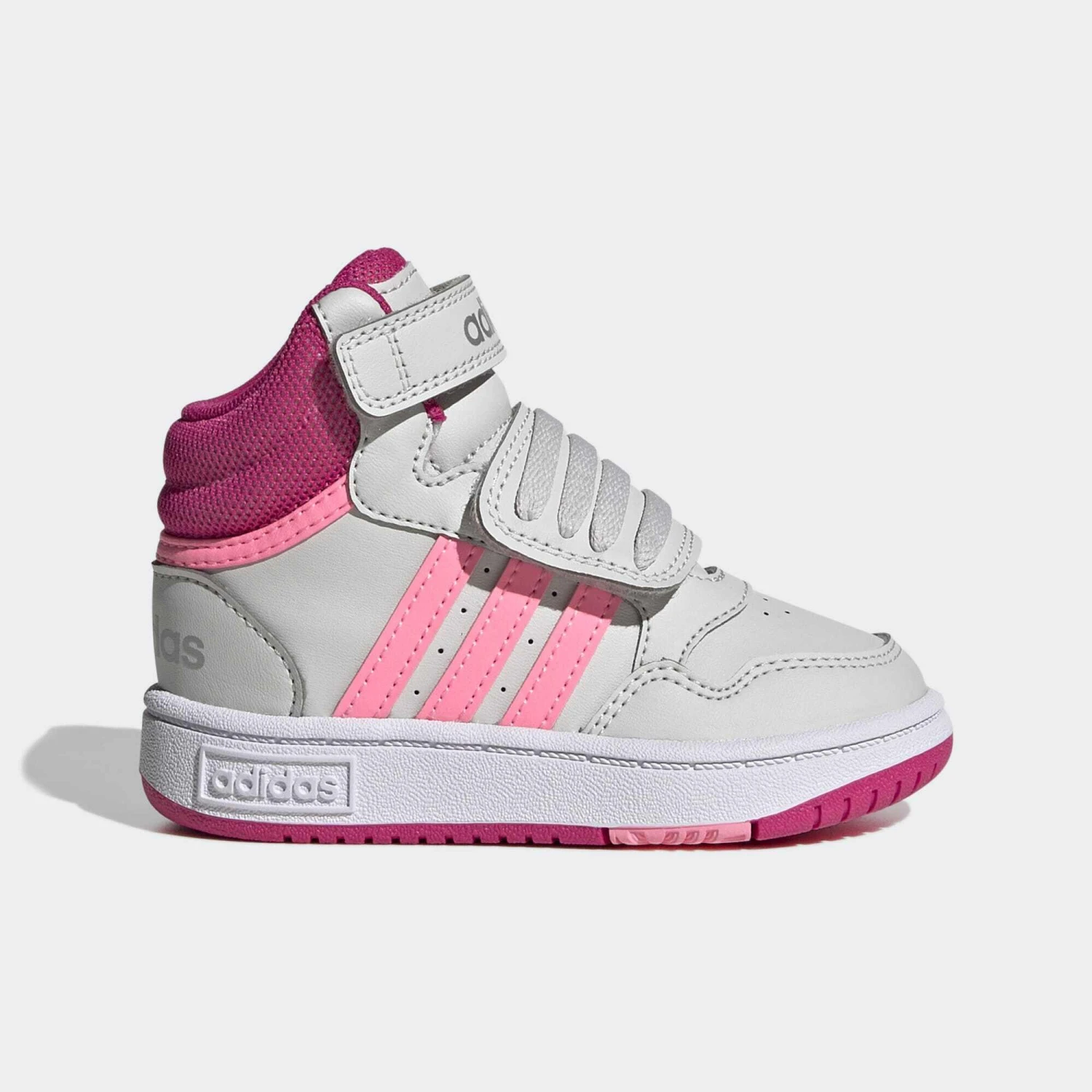 Add some court-inspired style to your tiny B-ball fan’s wardrobe. These infants’ adidas sneakers bring the support and stability of a basketball shoe to an everyday sneaker. The synthetic leather upper gives them an elevated look while keeping the shoes lightweight enough for little feet. A mid-top silhouette hearkens back to the golden age of basketball greats.
