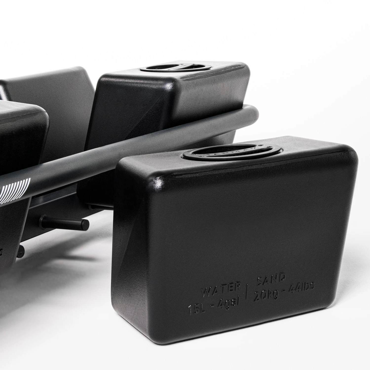 Unlike standard hoops with a single base, this hoop has 6 tanks, each 15L, which are arranged on a base around the 4 wheels and can be filled with either water or sand (preferably sand). The tanks can be filled and emptied individually, which makes it all much easier.