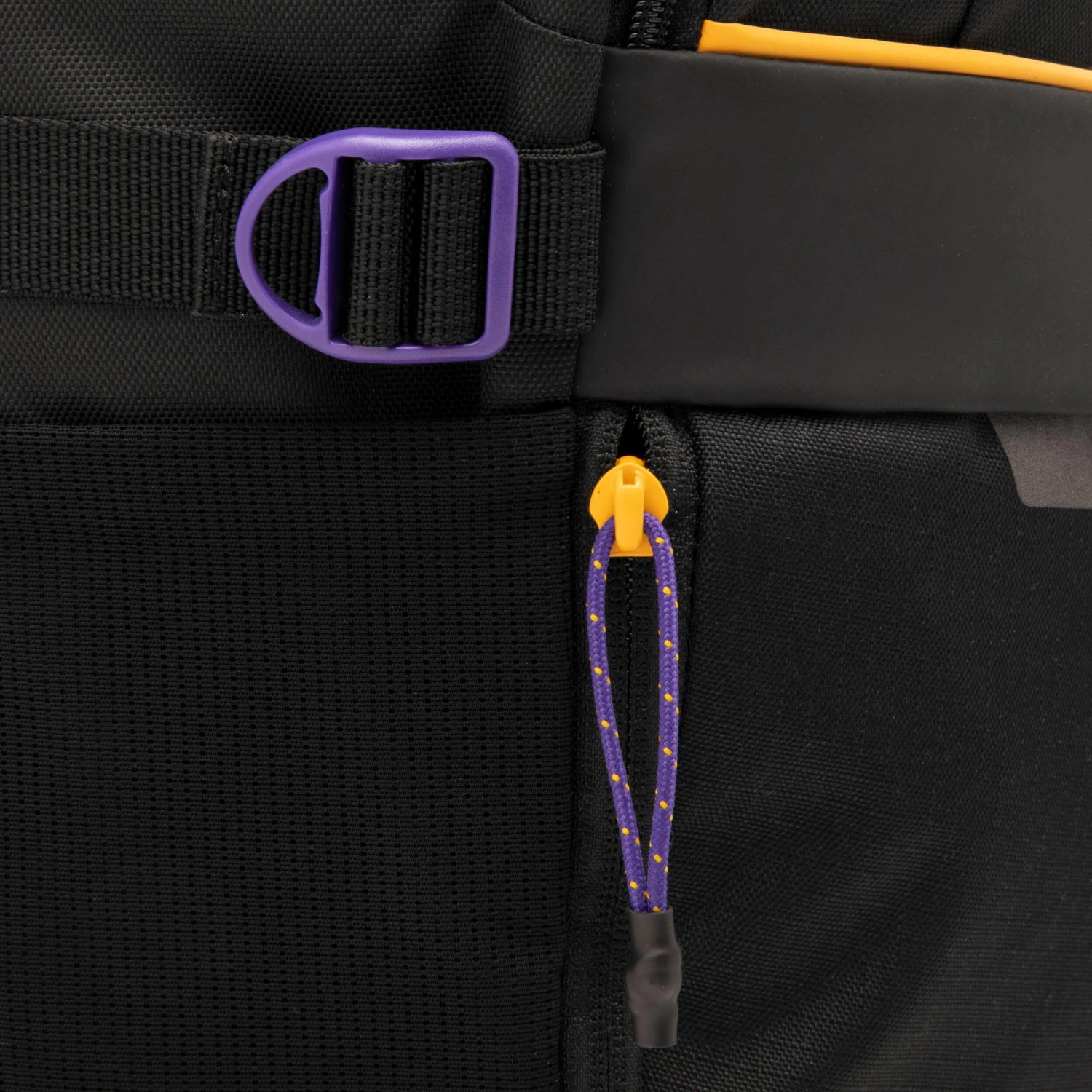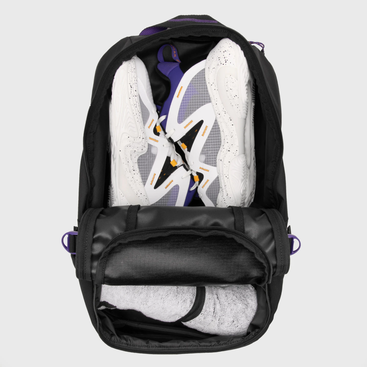 We’ve developed this bag in collaboration with users, with a volume suitable for a basketball player to easily and comfortably carry their equipment (size 7 ball, shoes (size 10) and accessories) to wherever they’re going to play. Equipped with clever pockets suitable for shoes and 2 bottles.