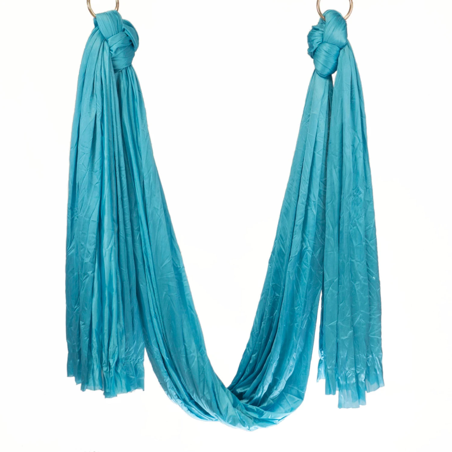 These Firetoys Aerial Yoga Hammocks have a small amount of stretch (about 10% across their length), which allows the swing to support you through your workout, and means that any moves that require a thin band of silk across the waist or under the arms are cushioned.