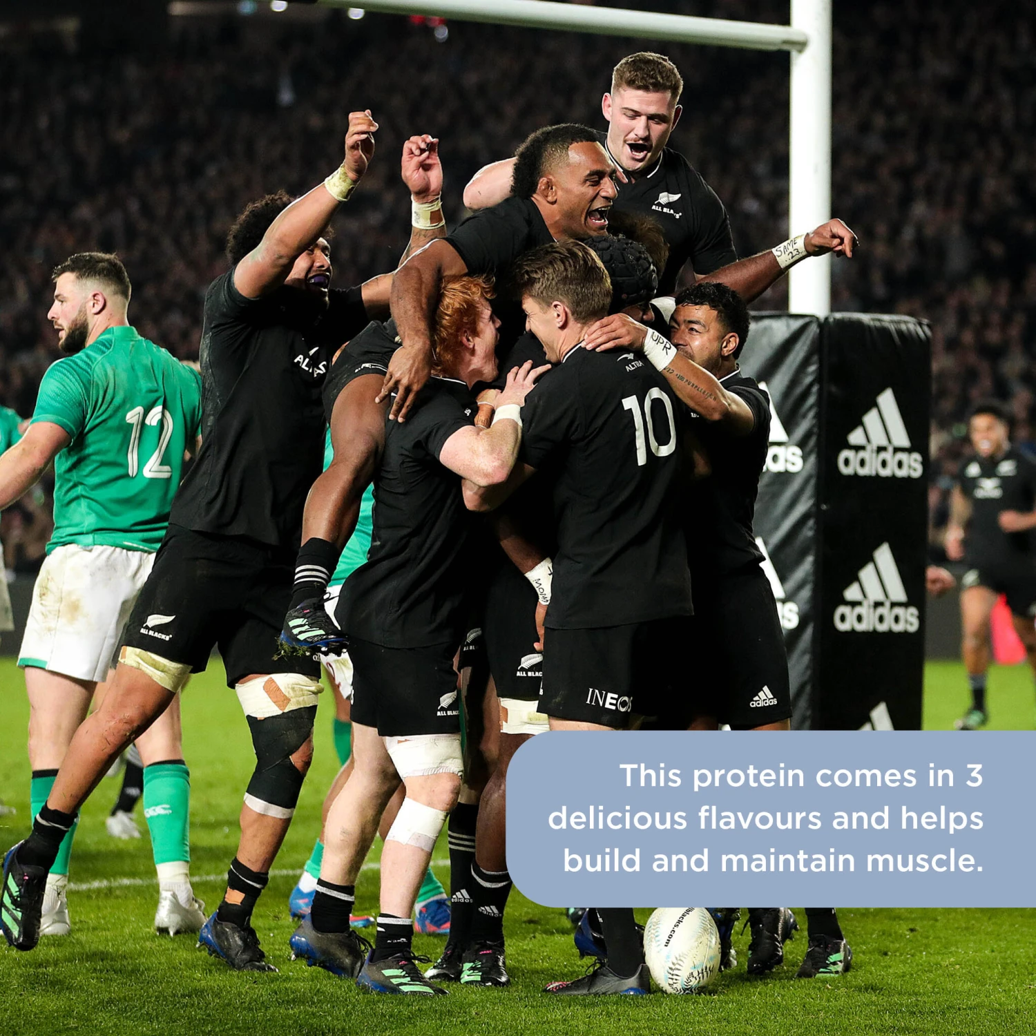 It was important for Healthspan and the All Blacks to launch a range that shared their mutual values. This led to the ‘clean, lean, green’ ethos: Ultimate Whey Protein is fully lab-tested, contains natural flavours and no unnecessary ingredients (Clean), with a science-backed formulation low in sugar to help you achieve your goals (Lean), and uses New Zealand based ingredients within recyclable packaging (Green).