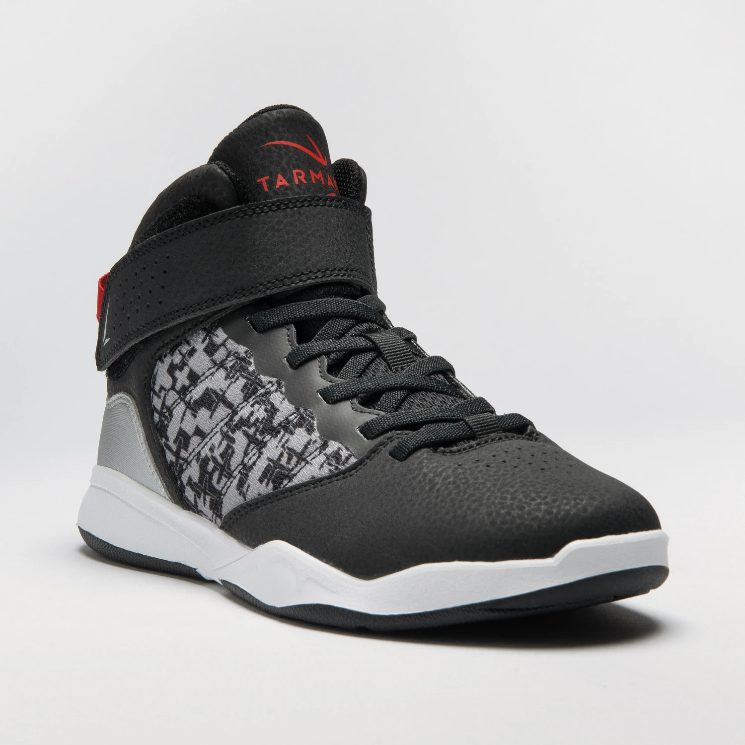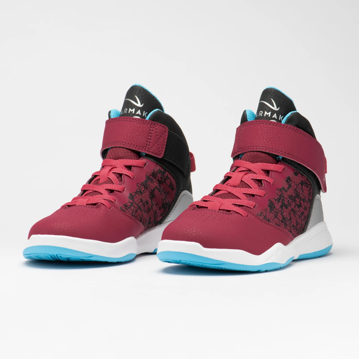 These kids’ basketball shoes were designed for young beginner basketball players.This basketball shoe is easy for a child to put on and take off on their own thanks to its elastics and rip-tab. Foot is supported with laces that won’t come undo on the court.