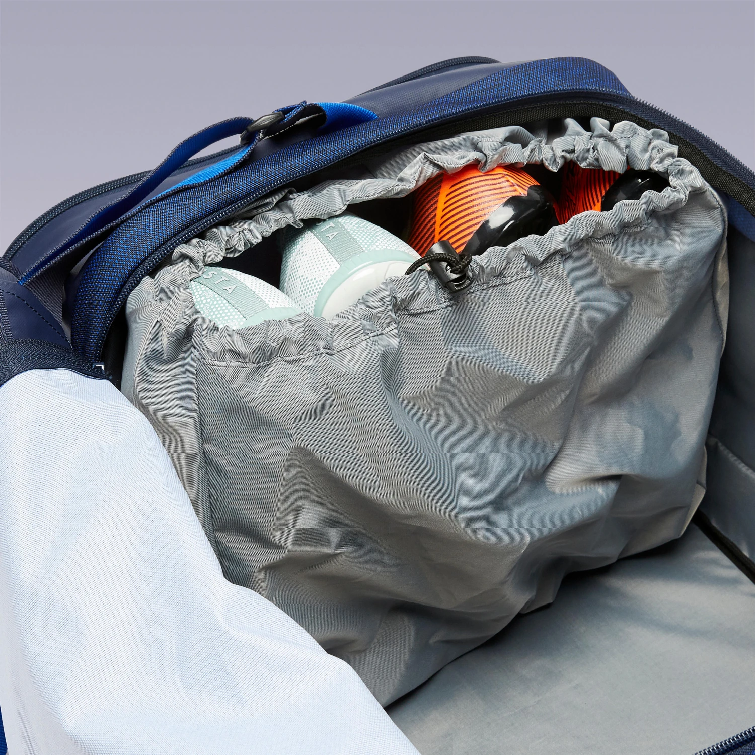 Our football product designers developed the ACADEMIC sports bag to improve comfort for intermediate sports users. It meets their needs both for transport and in the changing room. This bag is equipped with a grip system to reduce slippage when carried on the shoulder. You can also keep your feet dry in a dirty or wet changing room thanks to the detachable mat. When transporting your kit, the ventilated pocket also helps your boots dry faster.