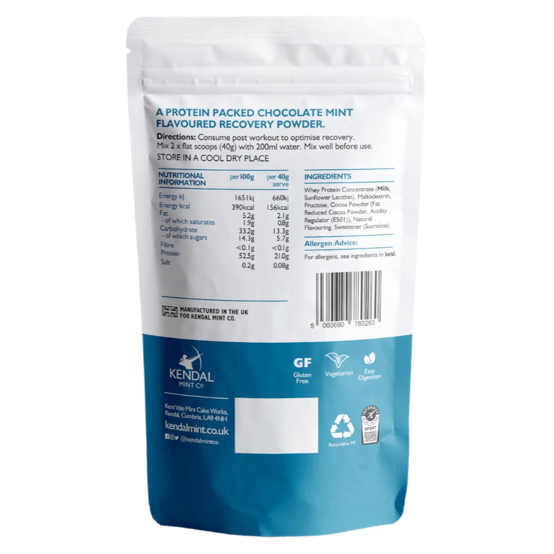 Delicious Chocolate Mint Flavour, Premium Whey Protein Recovery Powder. In Bigger, Better, 100% Recyclable Pouches. Easy on the stomach, Informed Sport Tested, Vegetarian & Gluten Free. 18 Serves.