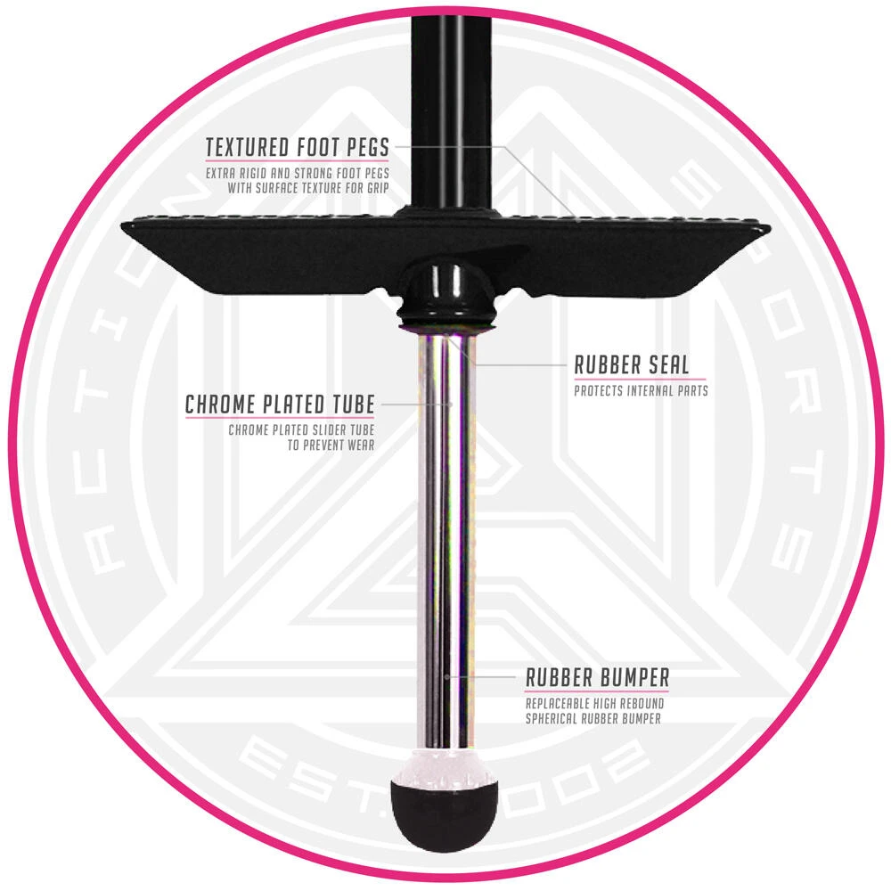 A high rebound urethane formula has been used for the rubber bumper to take you higher, for longer and is easy to replace. The high grade alloy stem is sealed around the chrome plated slide bar to help prevent the collection of dirt and debris inside, which would restrict movement – and your fun!