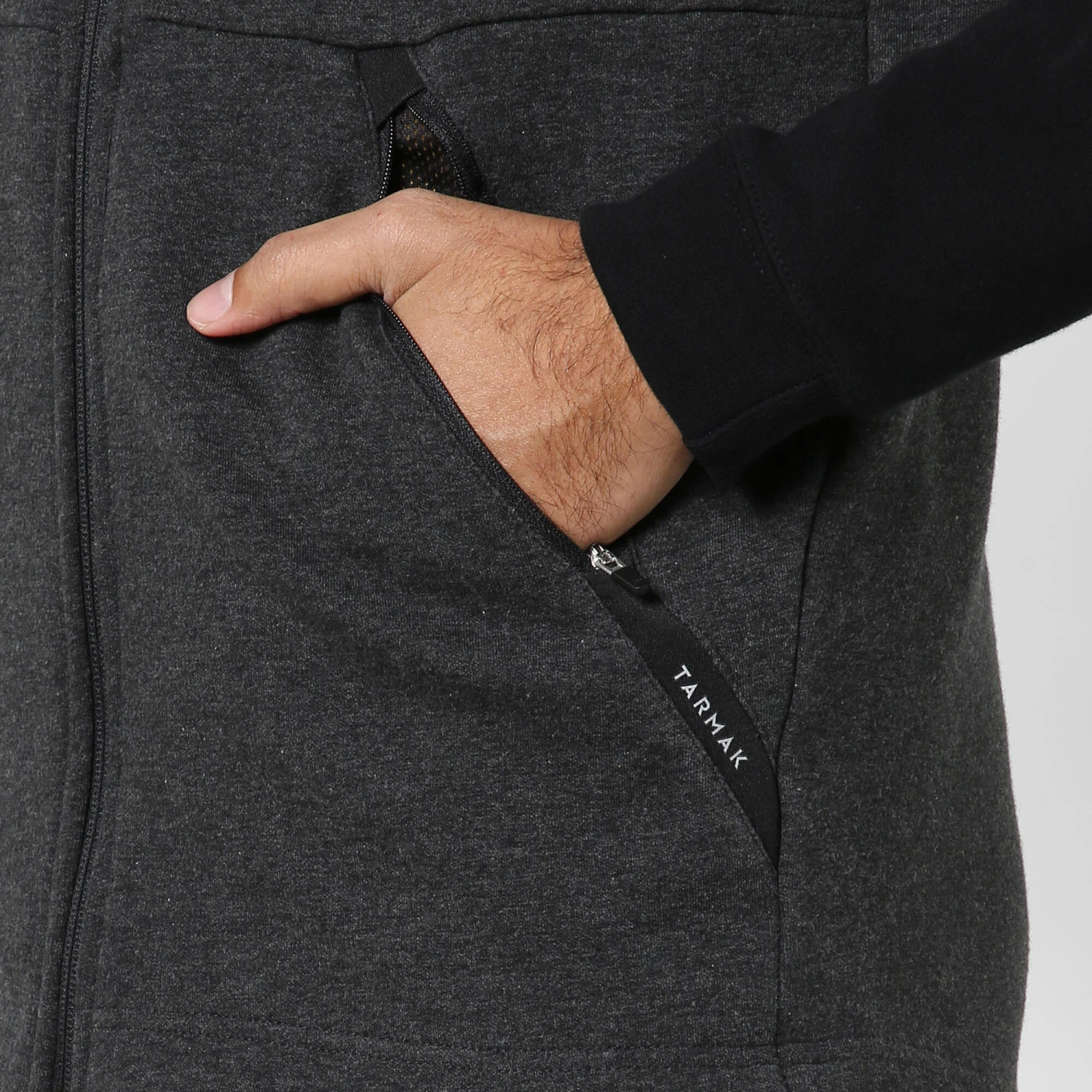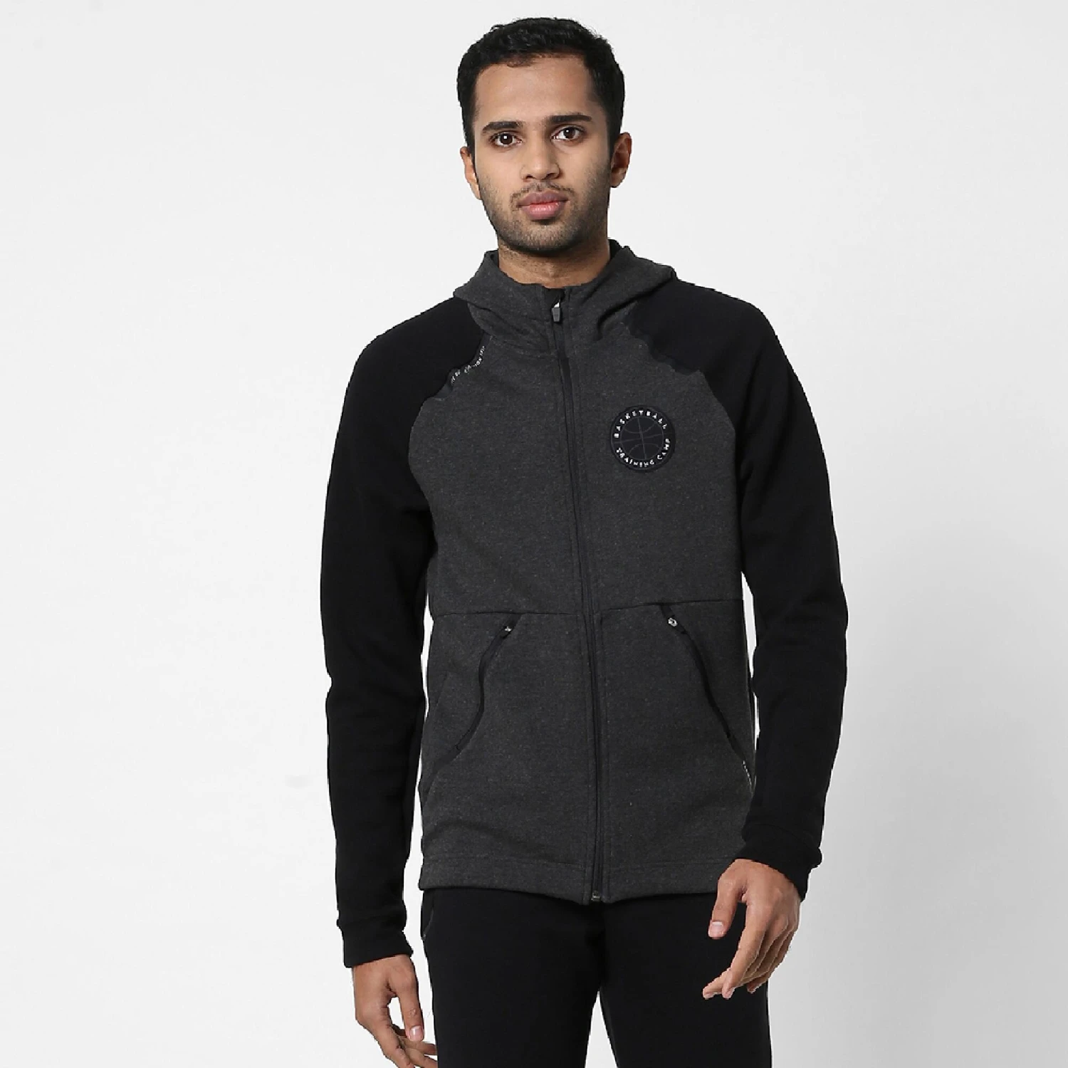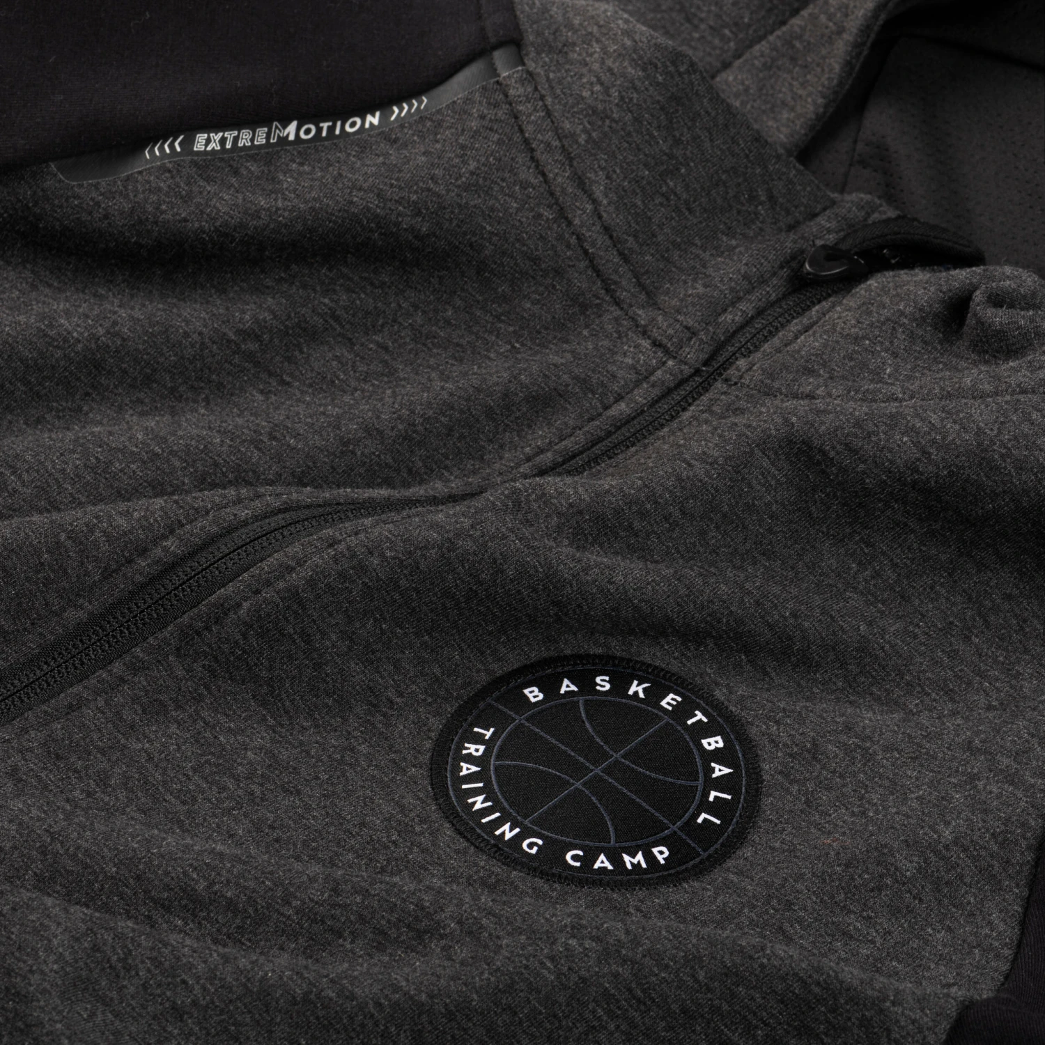 This tracksuit jacket was designed for basketball players to wear while training in cold weather, during warming ups, and before and after matches.The fabric keeps you warm while leaving you free to move around.It has two side pockets, a full-length zip, and a hood.