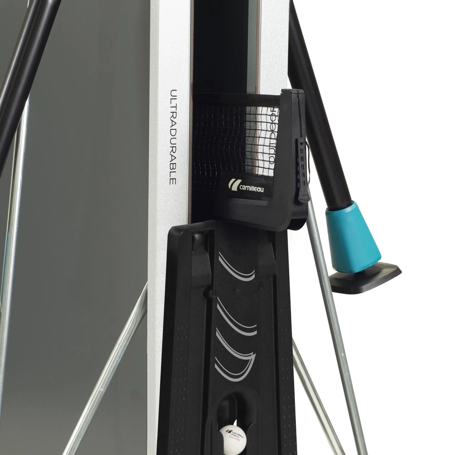 Resin tabletops are very durable (impacts, being hit by bats, fade-proof paint etc.). The tabletop has been given a Softmat anti-glare treatment to reduce the effect of the sun’s reflection by 3 times.