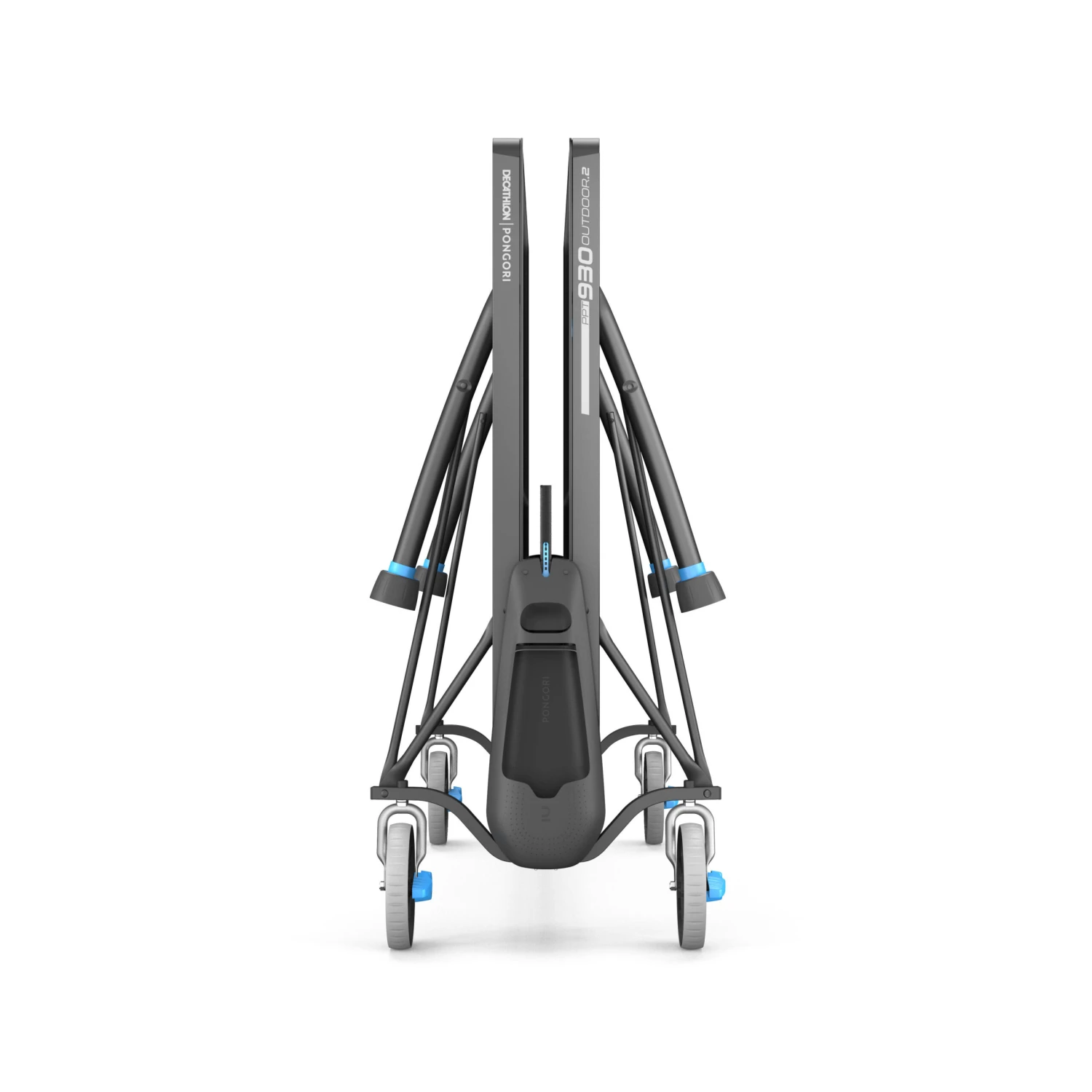 Our table tennis designers developed this PPT 930 table for your everyday outdoor and indoor games. Sold with cover.Looking for a great table tennis table with excellent bounce? With its 4 brakes, the PPT 930.2 is stable and its galvanised steel frame makes it sturdy and reliable.