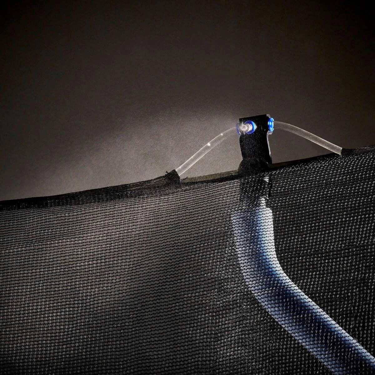 The mist nozzles simply hook up to a hose pipe and spray a soft and cooling mist onto the jump space as children play.