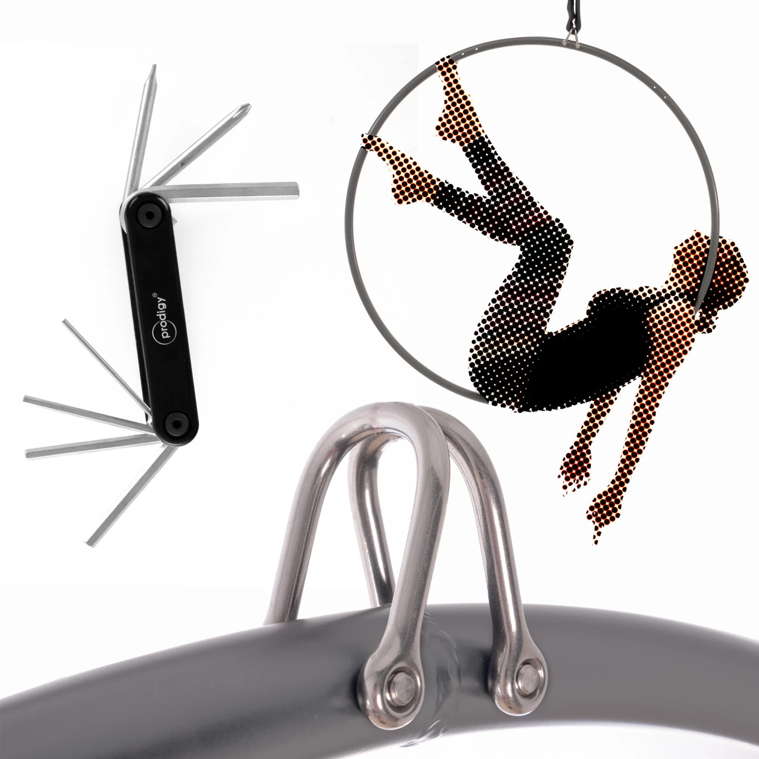There are optional accessories and essential rigging gear. What you need for each type of Aerial Hoop varies.