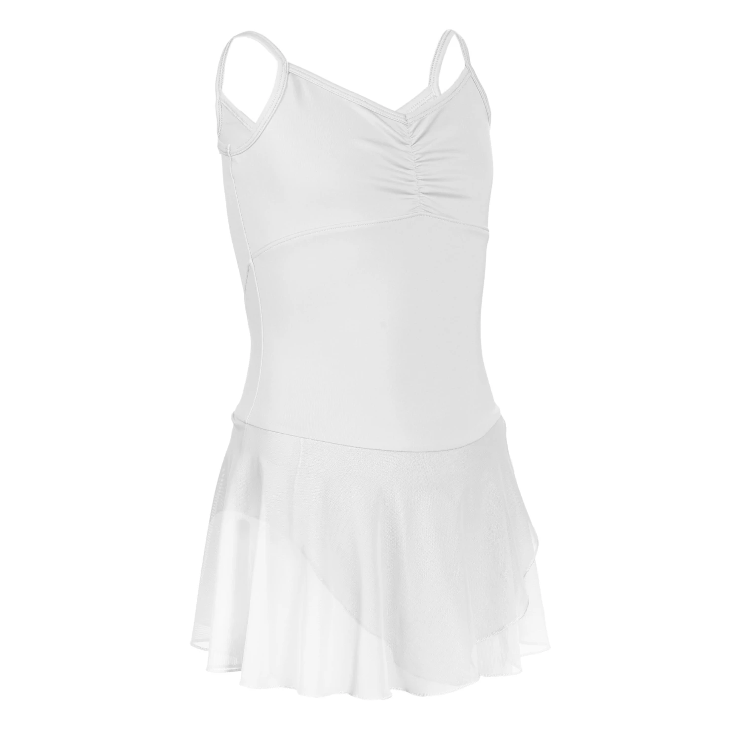Our dance team developed this recycled polyester skirted leotard for ballet dancers of all skill levels who want comfort, ease of movement and softness.The ideal skirted leotard for all skill levels, from beginner to advanced dancers. Thin straps, gathered at the front and lined, its built-in muslin skirt will make it easy to see your movements. This item has been checked and if necessary refurbished by our expert team of specialists so it can be sold online and in our stores as a Second Life product at a discounted price.