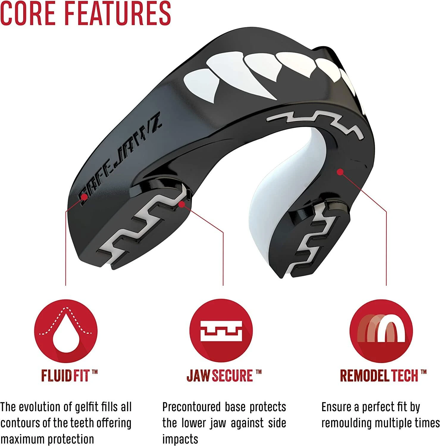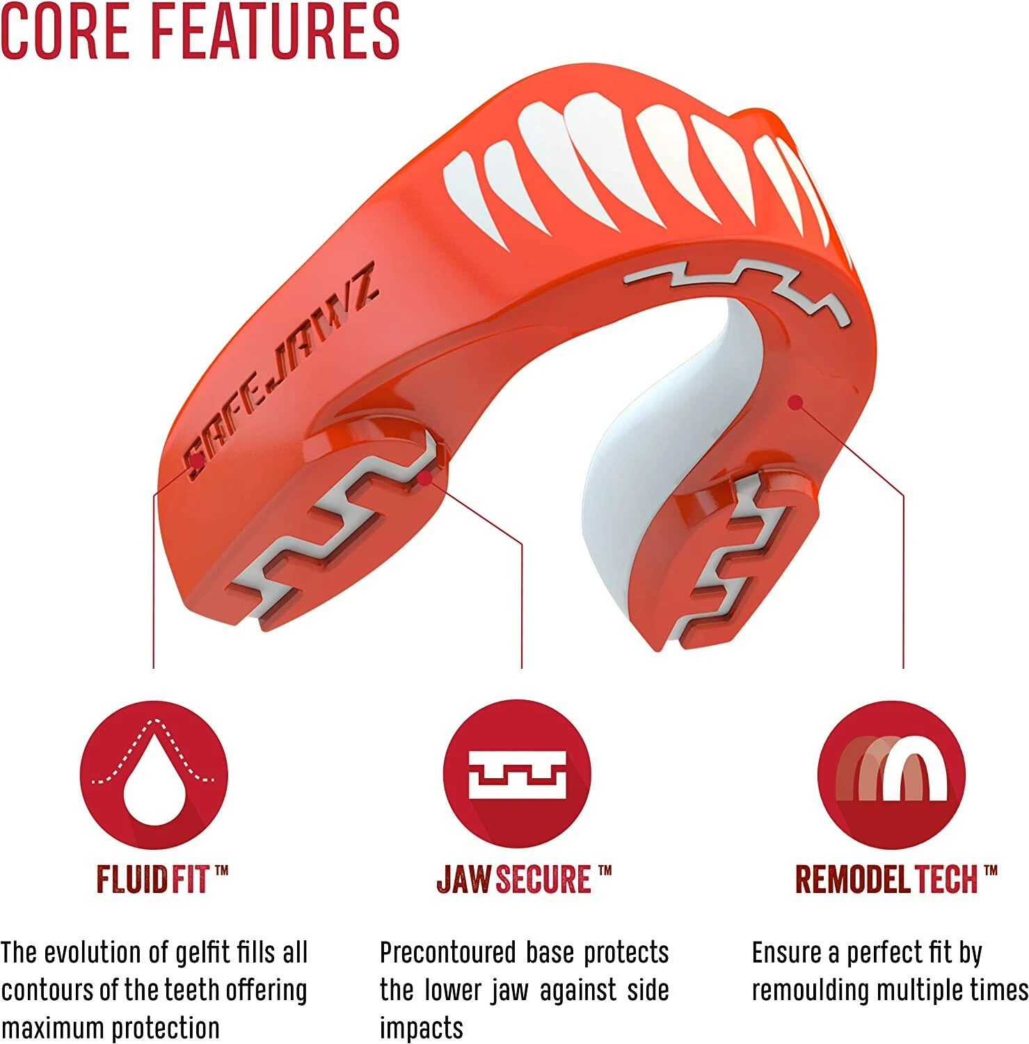 GREAT FIT – SAFEJAWZ offers amazing retention and secure- fit thanks to our FLUID FIT technology. It will fill the contours of your teeth and stay in the mouth – exactly where it’s meant to be!