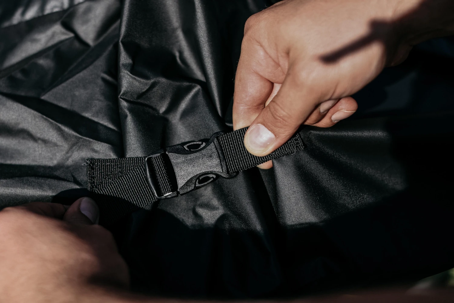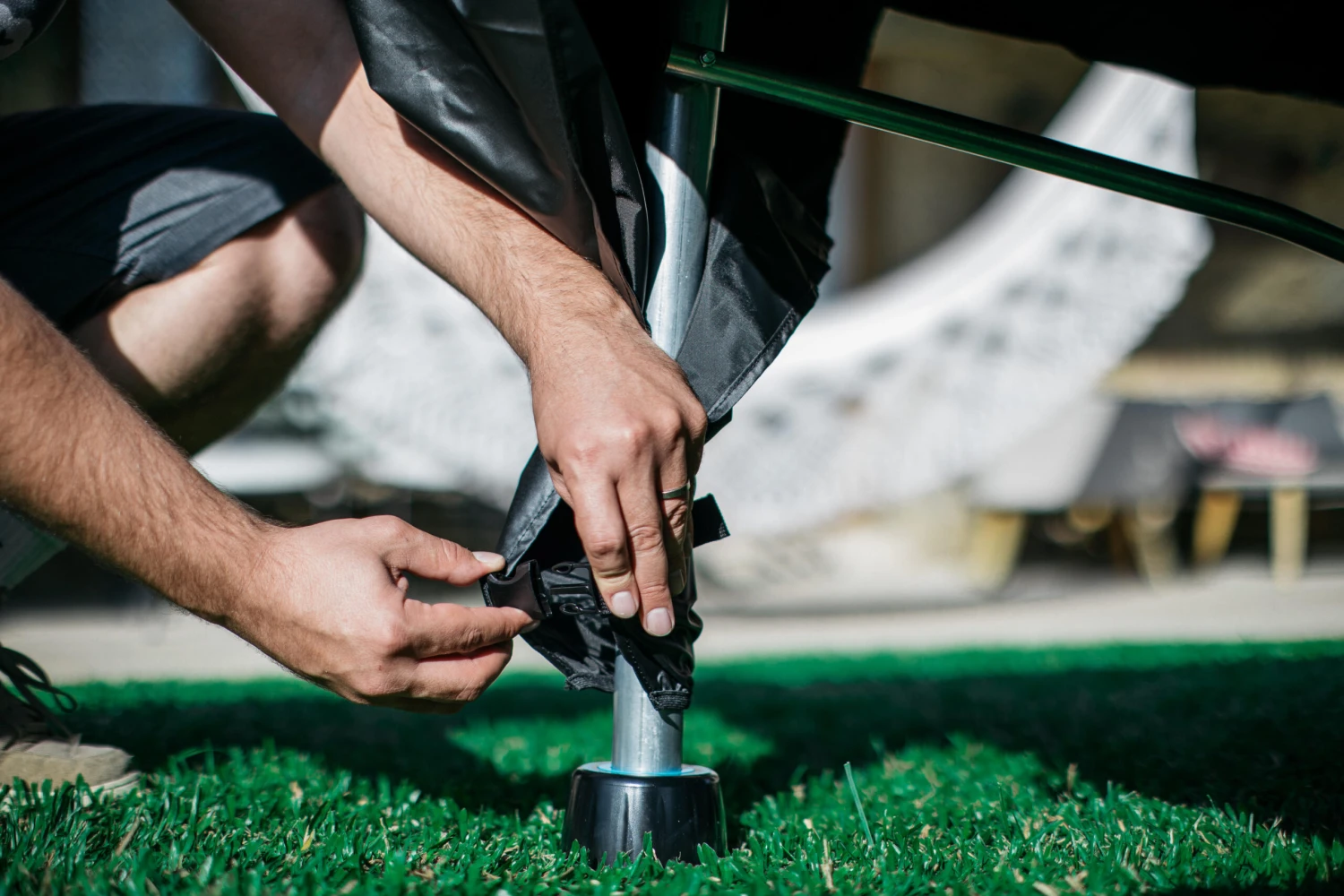 This cover, made from coated fabric, protects your outdoor table from dirt, sun, and rain when open.