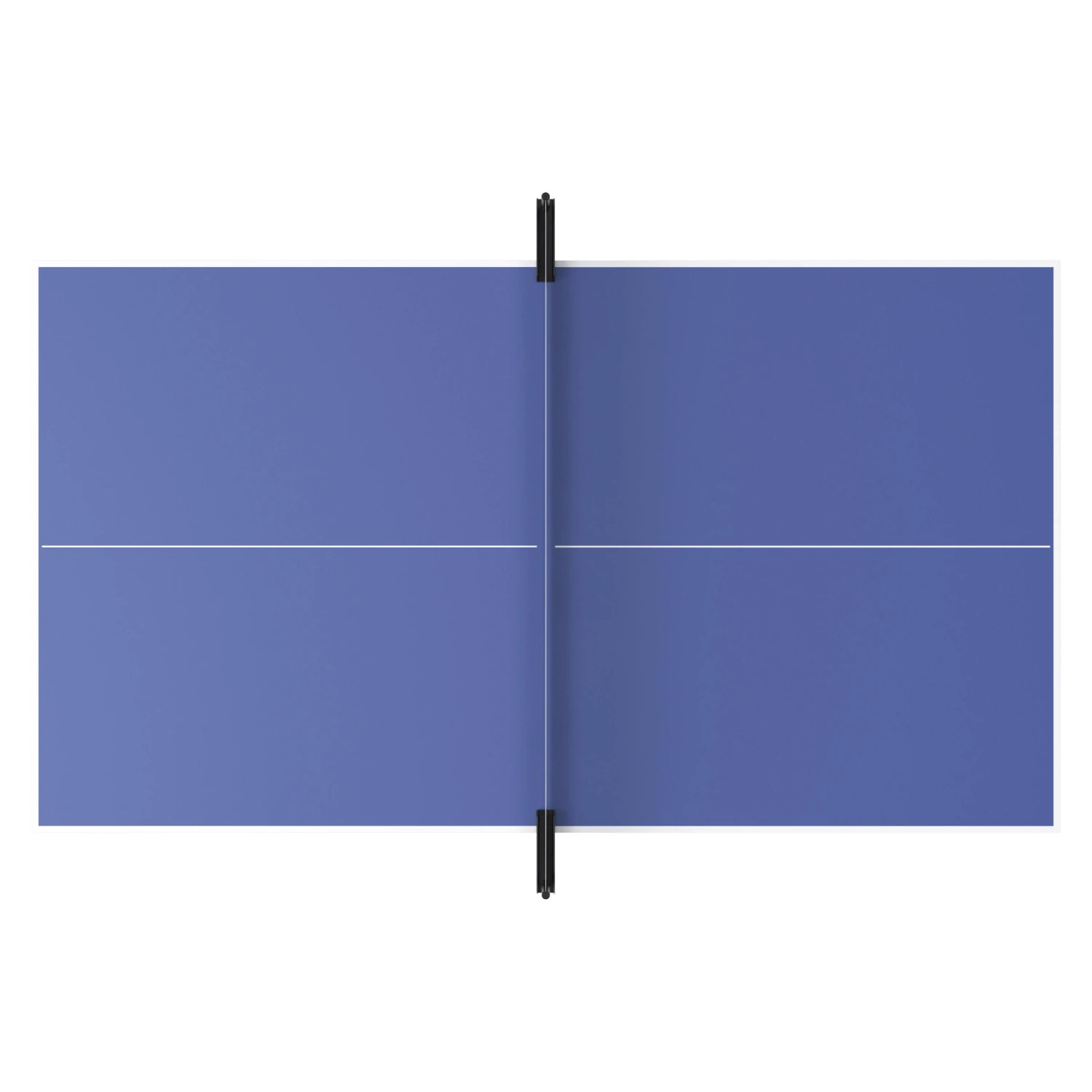 Our table tennis designers developed this indoor table for learning to play table tennis.Take your first table tennis shots with our TTT 100 table. Easily assembled using the 2 separate tabletops. The feet can be folded up after detaching the braces.