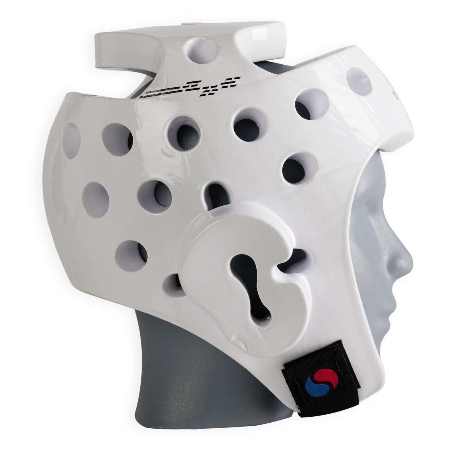 This headguard is specifically designed for taekwondo, with a look that evokes the Korean traditions. It provides protection while looking super sleek, and has several vents to better wick perspiration away as you train. On top of the head are markings inspired by the flag of South Korea, the birthplace of taekwondo.CE marking