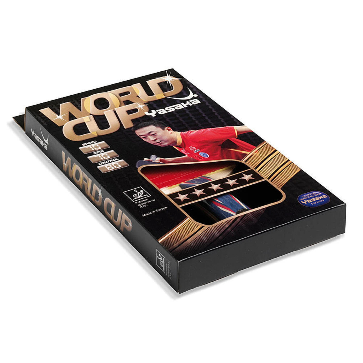 WORLD CUP is a 5-star Yasaka competition bat recommended for the novice competition player. The high quality 5-ply tournament blade is combined with the smooth ★★★★★ rubber sheet with a 2 mm medium hard sponge. The combination makes this bat very acceptable for modern play.